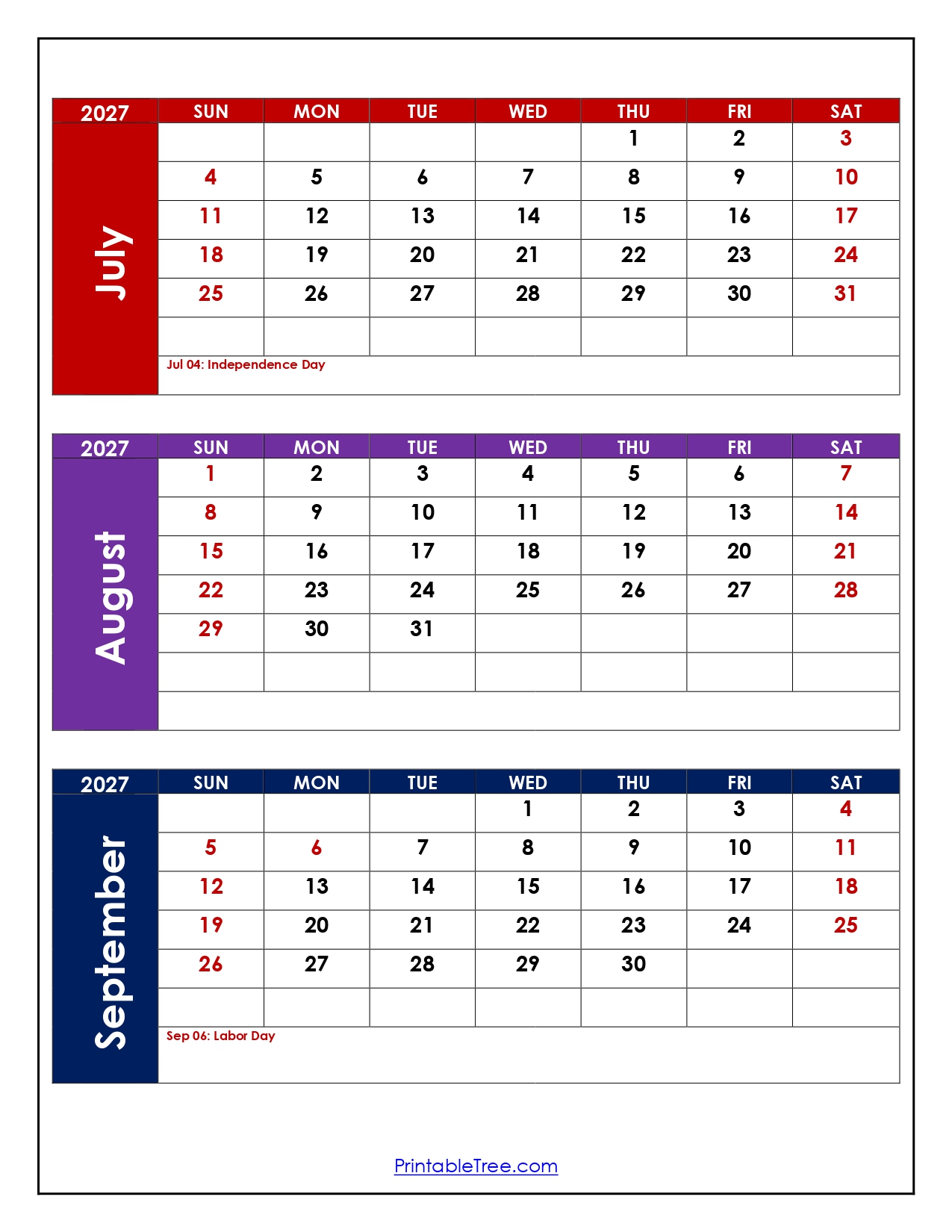 Free Printable Calendar for July to September 2027 Calendar PDF Templates. A three-month calendar can be easy to use for personal or professional use. A July to September 2027 Calendar on a single page is available for free download and printing in PDF and JPG formats.